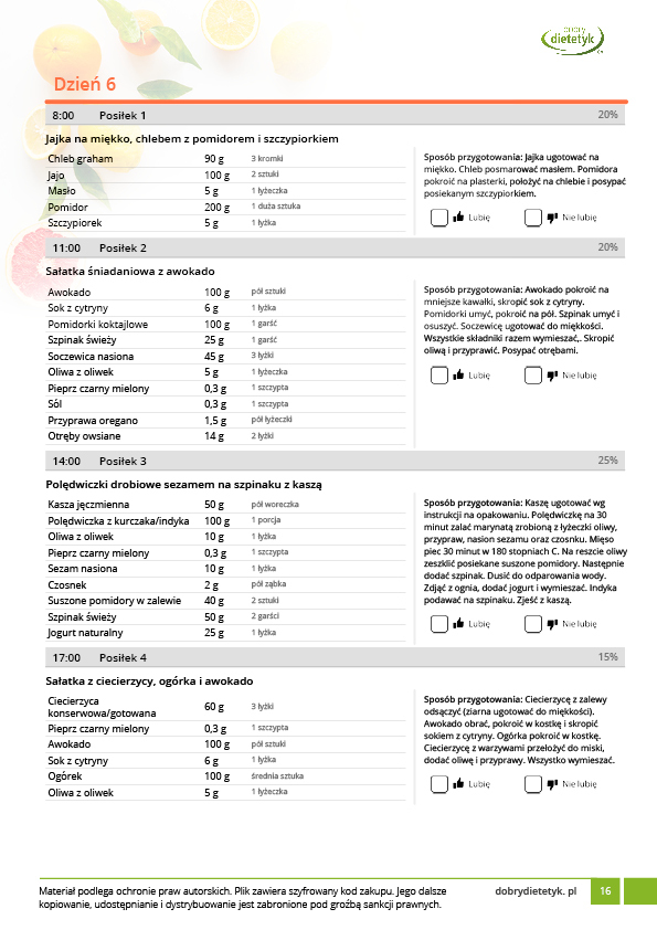 w formie precyzyjnych jadłospisów wielodniowych (na każdy dzień miesiąca jest opracowany osobny jadłospis). Tutaj nie musisz zastanawiać się co zjeść każdego dnia, gdyż będziesz mieć dokładnie wszystko rozplanowane.
